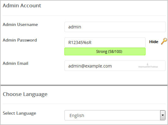 • Admin Username: Your new CMS Made Simple username (for security reason do not use the "Administrator" or the "Admin" username.)