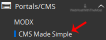 4. On the left side of your screen you should locate the "Portal/CMS" category. Click on it and then click on the "CMS Made Simple" link that will appear.
