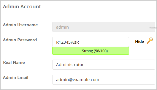 8. Under the "Admin Account" field enter the following information:
