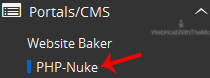 4. On the left side of your screen you should locate the "Portal/CMS" category. Click on it and then click on the "PHP-Nuke" link that will appear.