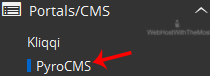 4. On the left side of your screen you should locate the "Portal/CMS" category. Click on it and then click on the "PyroCMS" link that will appear.