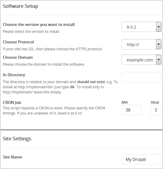- Admin Username: Your new Drupal username (for security reason do not use the "Administrator" or the "Admin" username.