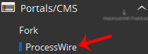 4. On the left side of your screen you should locate the "Portal/CMS" category. Click on it and then click on the "ProcessWire" link that will appear.
